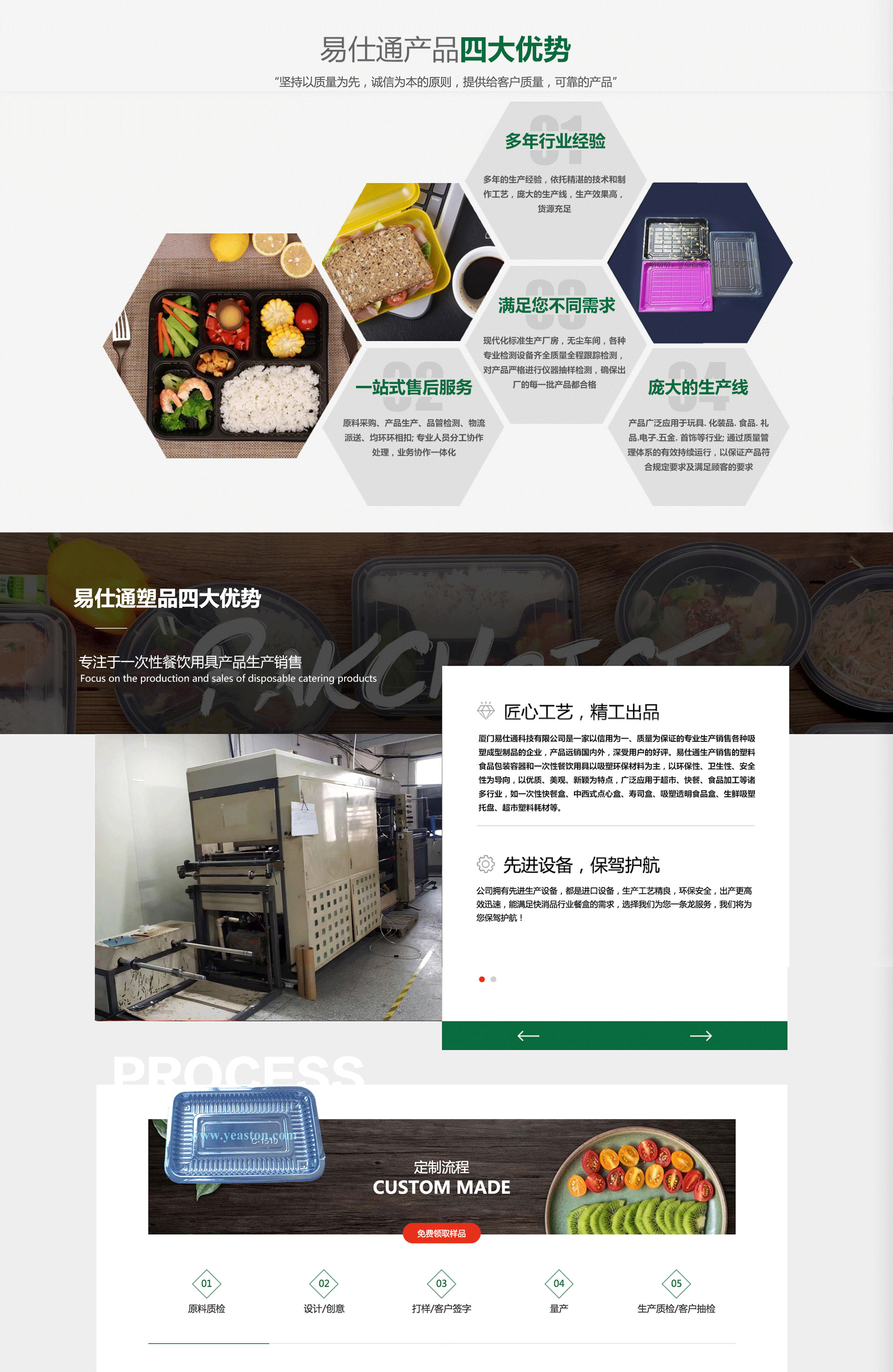 廈門易仕通科技有限公司是一家以信用為基礎(chǔ),生產(chǎn)銷售各種吸塑包裝制品的吸塑廠,產(chǎn)品遠(yuǎn)銷國內(nèi)外,深受用戶的好評。公司成立于2007年,擁有先進(jìn)的現(xiàn)代化成套吸塑生產(chǎn)設(shè)備和檢測儀器、擁有不斷創(chuàng)新的吸塑技術(shù)隊伍和誠信為本的經(jīng)營理念,為廣大客戶提供吸塑制品和熱情周到的服務(wù)。